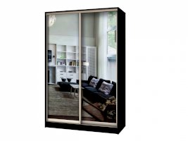 Данное изображение представлено в следующих цветах: корпус - Венге Цаво, фасады - зеркало, рамка двери и треки - Серебро матовое.
